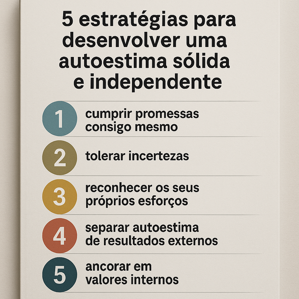 Quando o valor é medido por esses padrões internos, a necessidade de validação externa perde seu poder e a autoestima se torna algo naturalmente mantenedor e sustentável.