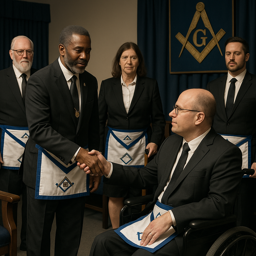 • Práticas nas Lojas Maçônicas: Algumas Lojas ao redor do mundo, sobretudo nos EUA, já adotam adaptações físicas e metodológicas para acolher irmãos com deficiência, reconhecendo que as limitações físicas não comprometem a participação nos trabalhos e ritos.
